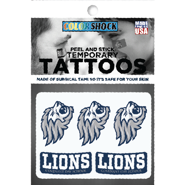 CDS Lions peel and stick temporary tattoo pack, made of surgical tape for easy removal, pack of 5.