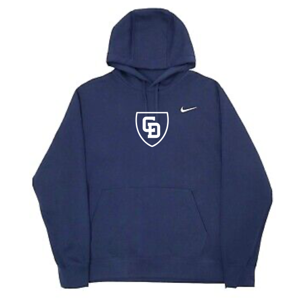 Nike® Club Fleece Sleeve Swoosh Pullover Hoodie Shield NAVY
